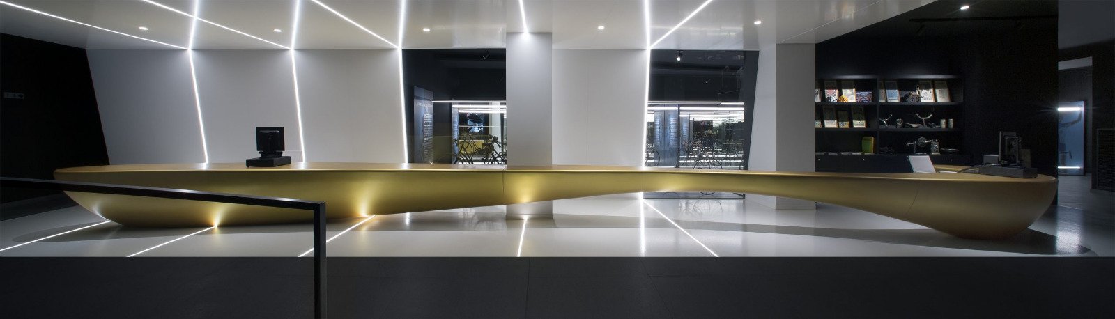 En este proyecto desarrollamos el mostrador principal del espacio BiciLab, una pieza escultórica realizada en fibra de vidrio de alto rendimiento. Este material fue seleccionado por su gran resistencia, versatilidad formal y durabilidad en entornos de uso intensivo. El diseño orgánico y fluido del mostrador se integra armónicamente con el lenguaje contemporáneo del museo, sirviendo como punto de acogida y referencia para los visitantes. El resultado es una pieza única que combina estética, funcionalidad y tecnología aplicada al diseño espacial.